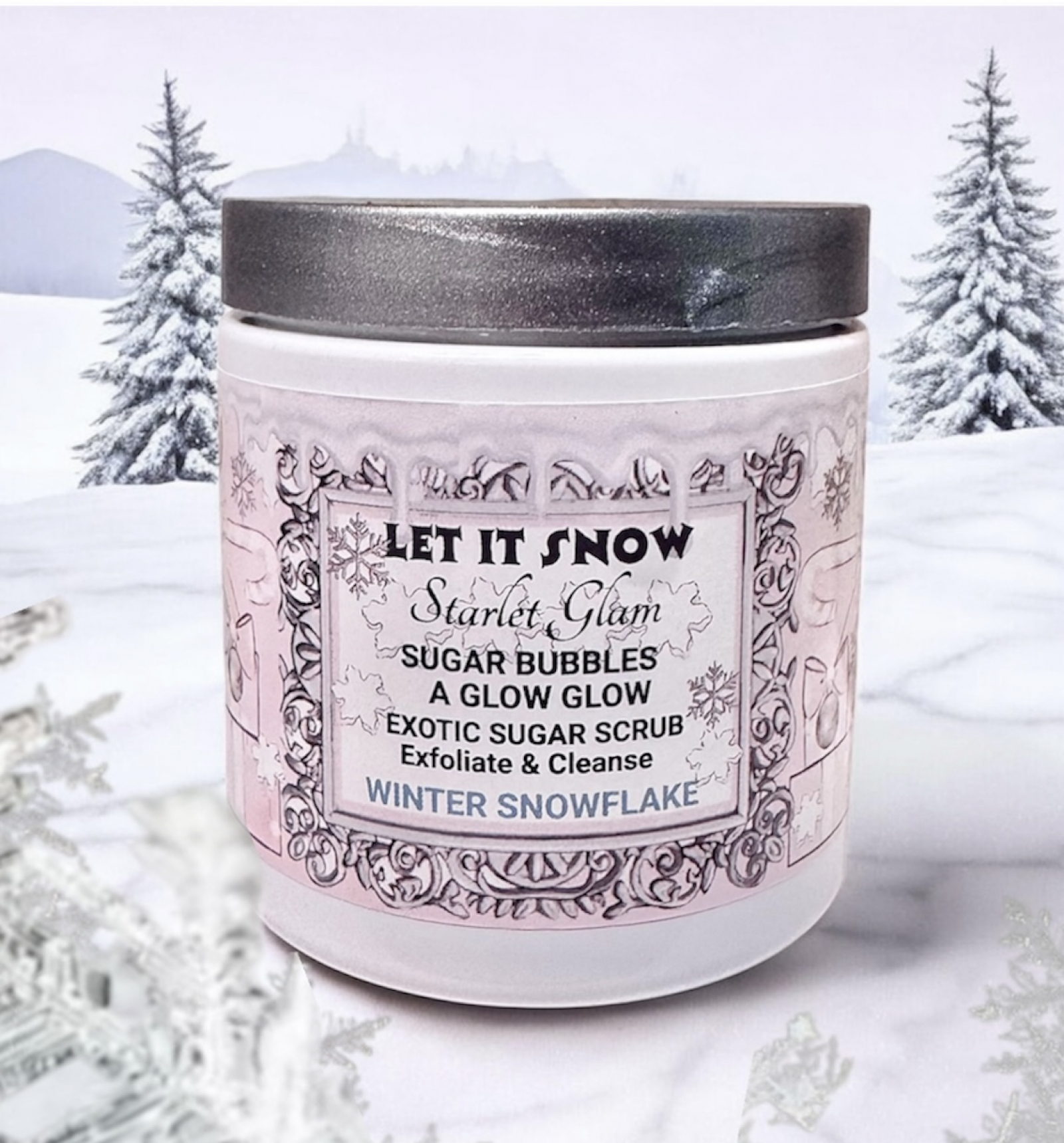 Sugar Bubbles A Glow Glow is not your ordinary Sugar Scrub. As a matter of fact, it's unlike any other! This amazing Scrub includes organic sugar to exfoliate; and fluffy whipped soap with an explosion of sugar bubbles to cleanse you in one step! And unlike other scrubs that can be an oil slick, there's no oily mess left on your body - or your shower floor. The only thing left behind on your skin will be a radiant glow! Enriched with Shea butter (known for its healing properties), and exotic skin loving oils of Macadamia, Avocado and Kukui.